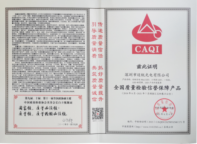又是一年“质量月”即将来临,在中国质量检验协会组织的2021年全国“质量月”之“企业质量诚信倡议”专题活动中,mile米乐光电经过中国质量检验协会的公平、公正、公开的评选,一举斩获“全国质量检验信誉保障产品”“全国质量诚信先进企业”“全国质量检验稳定合格产品”“全国LED显示屏行业质量领先企业”四项殊荣。