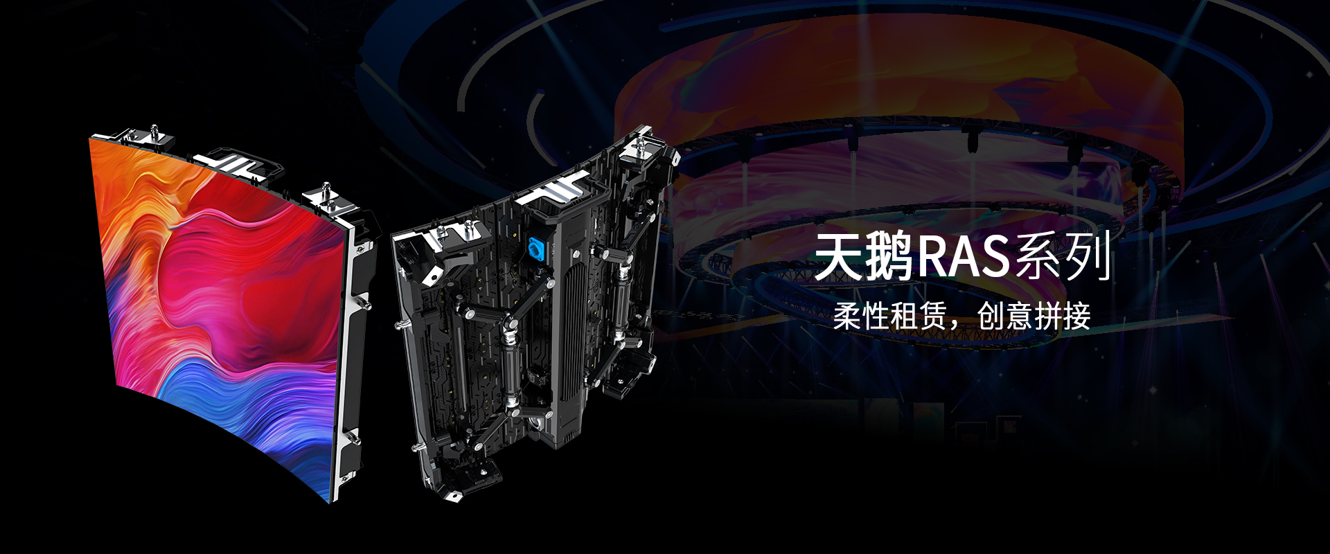 支持弧形安装,最大角度:±30°,单个箱体可以实现完美的“S”曲线,具有超高的灵活度,无论是大角度的内外弧造型,还是圆柱、90°圆弧直角造型都能轻松打造,多种创意拼接配合不同场景使用。