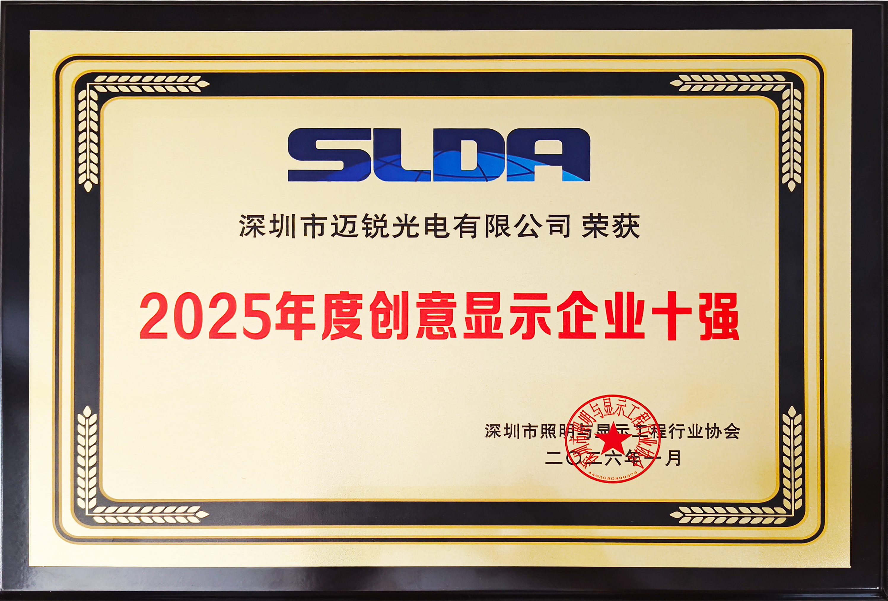 1月6日,以“未来之光・链接世界”为主题的深圳市照明与显示工程行业协会(SLDA)十周年年会在深圳隆重举行,凭借卓越的创新实力与市场影响力,mile米乐光电成功入选 “年度创意显示企业十强” ,这项荣誉是行业专家与市场客户对mile米乐长期深耕显示领域、坚持创意与技术创新并举的高度认可。